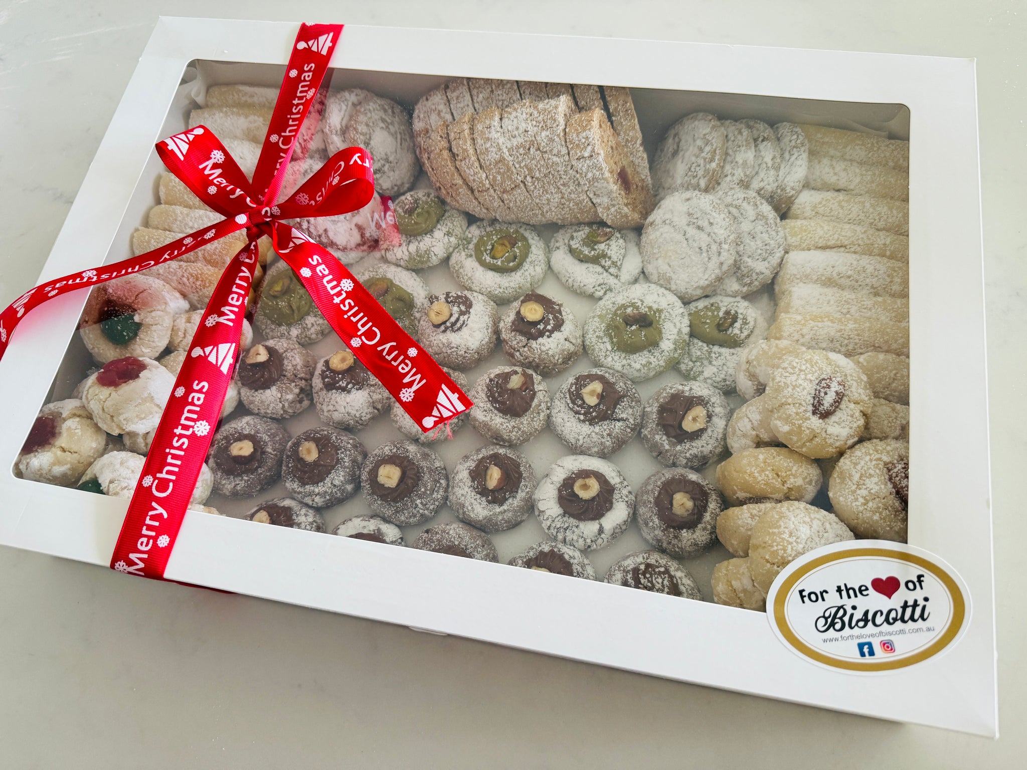 - Rocky Road Christmas Hamper Box - 1 x Medium mixed box of biscotti and 1 x Christmas Rocky Road (approx 200gm)